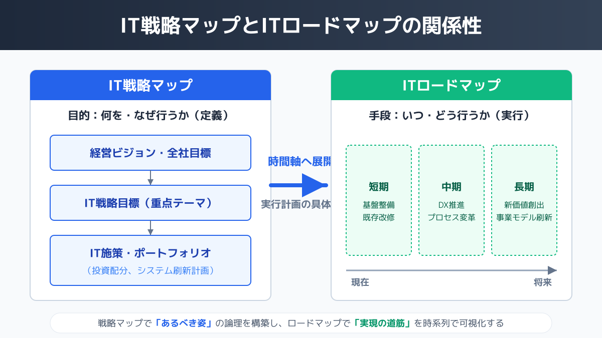 IT戦略マップとITロードマップの違いは何ですか?